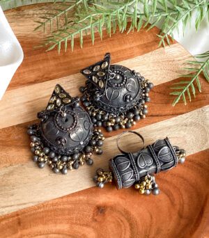 Tags: adjustable ring, Black, earrings, GOLD, golden earings, JHUMKA, Kannan Combo, RING