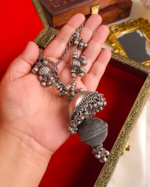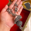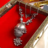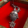 This is a must-have statement necklace from our German silver collection. It’s our ghughuru necklace, with ghuguru-studded chains. Perfect for pulling off a statement look.