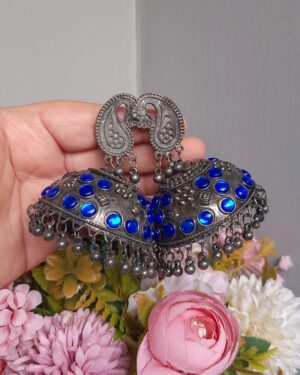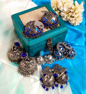 Be the first to review “Mayur Stonework Jhumka Earrings, Blue, Black” Cancel reply
