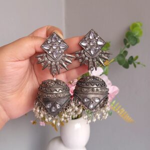 Be the first to review “Stonework Banzara Jhumka Earrings, Matt Black” Cancel reply
